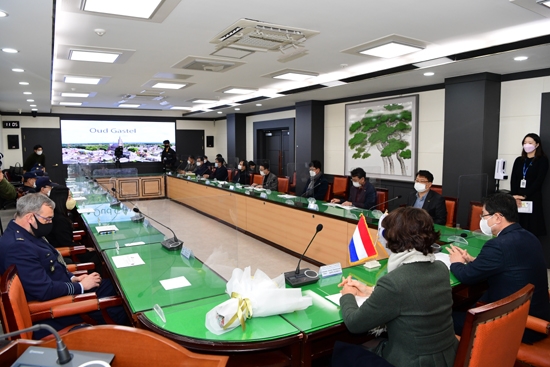장신상 군수와 안효명 6.25 참전용사회장, 김남호 네덜란드 교류문화제 추진단장을 포함해 20여명이 참석한 이날 행사에서는 상호인사와 함께 가스텔 마을에서 보내는 영상메시지를 함께 시청했다.