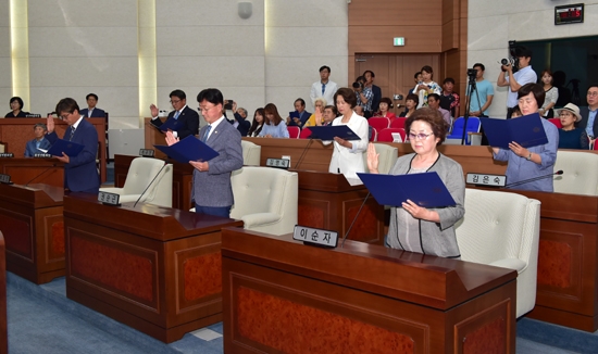 | ↑↑ 제8대 횡성군의회 개원식(2018년 7월 3일) |