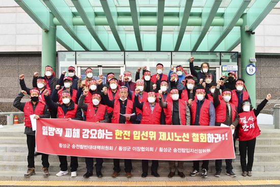 이어 “지역주민 의견을 듣고 최대한 반영하겠다는 한전의 말과는 달리 횡성의 실정과 피해상황, 의견에 대해서 귀를 닫고 무시했다”고 주장했다.