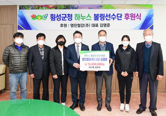 | 횡성군청 실업볼링팀 하누스 선수단 후원식이 지난 7일 오후 2시 군수 집무실에서 개최됐다. 이날 행사는 영진철강(주) 김영준 대표의 후원에 따른 것으로 1500만원 상당의 볼링물품을 후원했다.