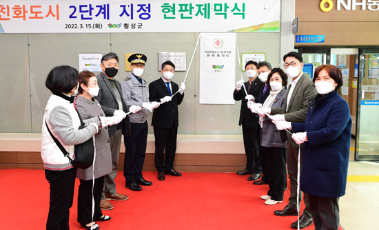 | 여성친화도시 2단계 지정 현판 제막식이 지난 15일 오후 2시 군청 1층 로비에서 장신상 군수, 한왕규 횡성교육장, 엄명용 횡성경찰서장, 최기순 여성친화도시 군민참여단장 등 관내 기관단체장 40여명이 참석한 가운데 열렸다.