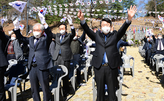 | “만세! 만세! 만세!” 지난 1일 오전 10시 횡성보훈공원에서 횡성군민 만세운동 103주년 기념식이 거행됐다.