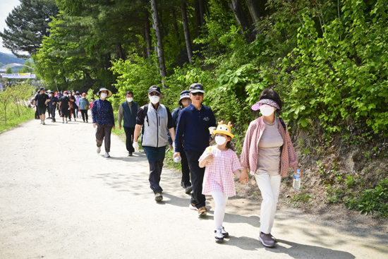 | ↑↑ 지난 6일 갑천면 망향의동산 일원에서 열린 횡성호수길축제 성공기원 걷기대회에 마스크를 착용한 참여자들이 많이 눈에 띄었다. |