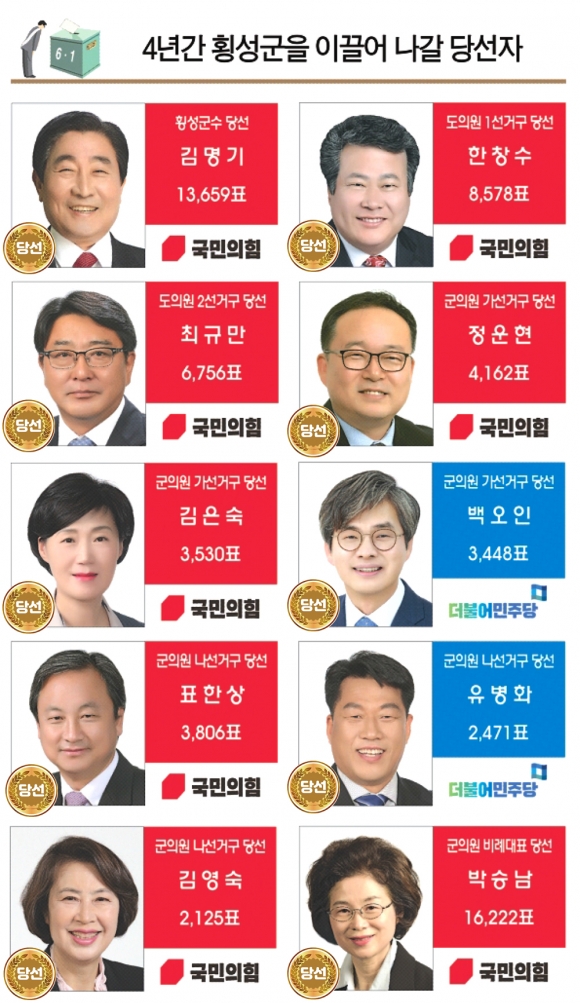이번 선거결과는 그 어느 선거보다 전국적으로 거세게 윤석열 대통령의 바람이 몰아쳐, 횡성뿐만 아니라 전국 대부분의 지역에서 여당이 압승을 하는 선거로 끝이 났다.
