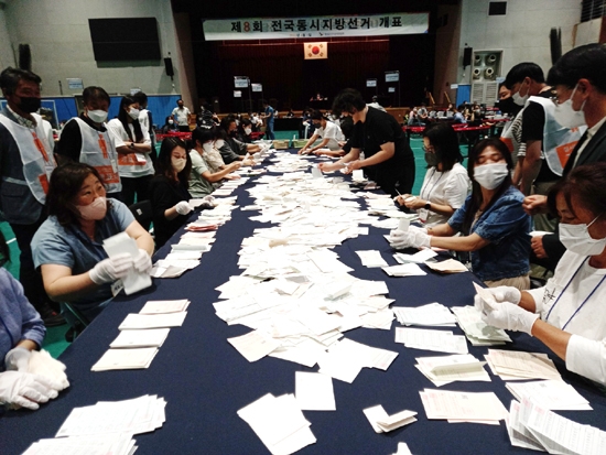 이번 개표는 지난 대통령선거와 달리 7장의 투표용지를 분류해야하고, 투표시간 연장 때문인지 개표 결과가 조금 늦어지기도 했으며 각 선거 캠프에서는 TV개표 방송을 지켜보면서 후보들의 득표수를 확인하는 등 긴박하고 분주한 모습이었다.