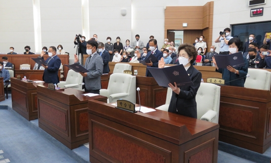 동료의원님들께서는 그 어느 때보다 지역발전에 대한 투철한 사명감으로 의원으로서의 책임과 의무를 다하는 의정활동을 펼쳐주실 것을 부탁드립니다.