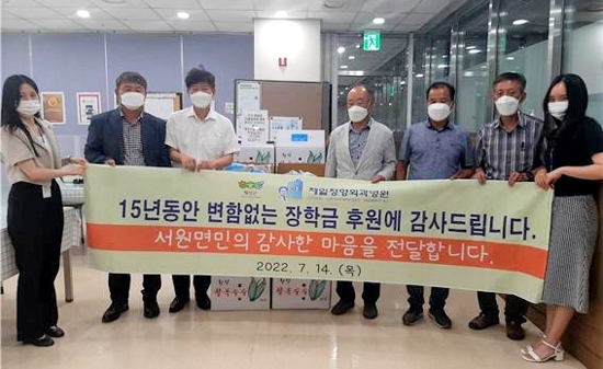 김종길 문화체육회장은 “15년째 서원면 지역학생들을 위해 장학금을 후원해 주는 끈끈한 인연에 감사하다”고 고마움을 전했다. |