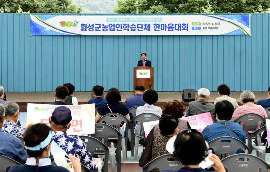 | 횡성군 농업인학습단체 한마음대회(대회장 임원규)가 지난 15일 오전 11시 횡성어울림한마당에서 지역농업 발전의 선도적 역할을 맡아온 농촌지도자, 생활개선회, 품목별 농업인연구회, 4-H회 등 농업인 학습단체 회원 800여명이 한자리에 모여 화합과 결속을 다졌다.
