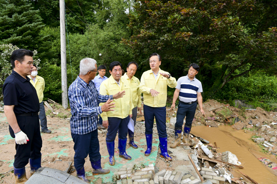| ↑↑ 횡성군의회(의장 김영숙)는 지난 11일 청일, 둔내, 서원 등 관내 피해 현장을 방문해 피해 주민을 위로하고, 신속한 복구대책을 약속했다. |