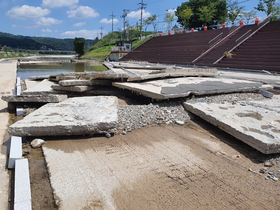 공사 관계자는 “이번 집중호우는 댐방류와 물 유속이 거세서 피해가 컸다”며 “수해 피해액을 정확하게 파악이 아직 되지 않았지만 수해 피해거리는 1km정도이고 피해액은 수억원은 넘을 것”이라고 말했다.