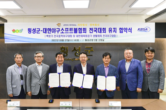 | 횡성군과 횡성군체육회는 지난 7일 오후 2시 군청 소회의실에서 대한야구소프트볼협회(KBSA)와 야구대회 유치 협약을 체결했다.