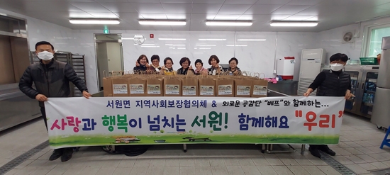| 서원면 지역사회보장협의체(위원장 원용석)는 지난 29일 질병과 장애 등으로 식사 준비에 어려움을 겪고 있는 70가구에 반찬꾸러미를 전달했다.