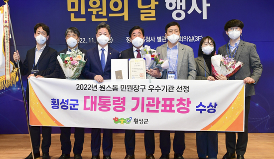 횡성군, 전국 원스톱 민원창구 평가 대통령 표창