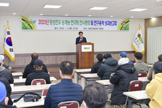 | 횡성한우 승계농 연구회(회장 최철희) 연시총회 및 횡성한우 연구용역 성과보고회가 지난 5일 횡성군농업기술센터에서 진행됐다.