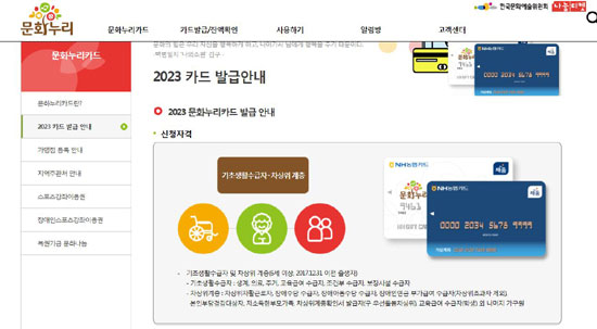 한편, 문화누리카드 발급 및 이용 등에 대한 자세한 사항은 문화누리카드 누리집 및 전국 주민센터를 통해 확인할 수 있다. |