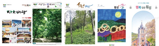| ↑↑ 군정 소식지 자치마당, 섬강의 물소리, 횡성바람, 횡성의 꿈, 행복 담은 횡성(좌측부터) |