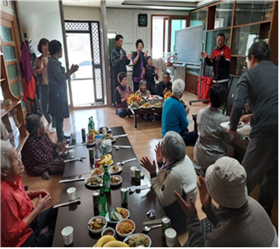 서원면 석화2리 노인회(회장 박종국)는 3월 26일 석화2리 경로당에서 65세 이상 마을 어르신 가운데 생일을 맞이한 오한근 어르신 외 17명의 생일상을 차려드렸다.