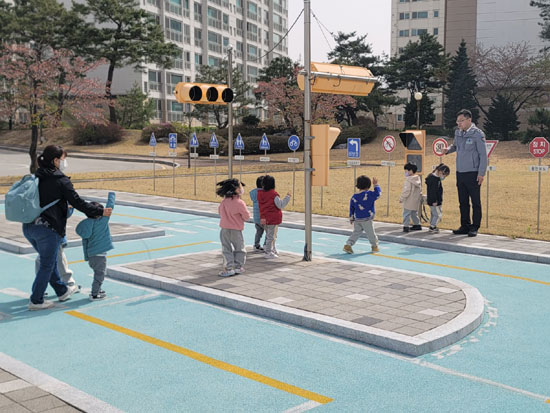 횡단보다 안전하게 건너기, 교통표지판 내용 알기, 어린이통학버스에서 안전하게 타고 내리는 방법 등 체험교육으로 진행됐다.