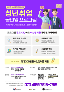 청년 도전 지원사업은 취업이 어려워 자신감을 잃은 청년들에게 개인별 심리 상담과 맞춤형 프로그램을 제공하고, 프로그램이 끝나면 취업 연계까지 돕는 사업이다. 프로그램을 모두 이수한 참여자에게는 최대 300만원의 수당과 특전도 지원한다.