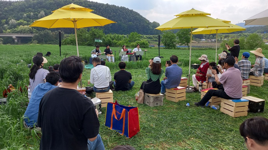| 횡성읍 농촌중심지 활성화사업의 일환으로 ‘음악과 함께하는 즐거운 농촌 만들기 프로젝트 온더그린 버스킹’이 지난 20일 오후 공근면 삼배리 귀리밭에서 진행됐다.