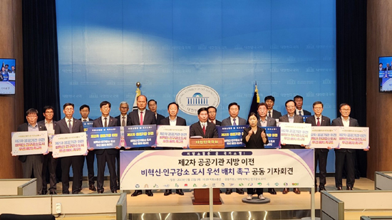 | 지난 25일 서울 여의도 국회 소통관에서 비혁신·인구감소 18개 지자체와 함께 공기관 지방 이전 촉구를 위한 기자회견을 개최했다.