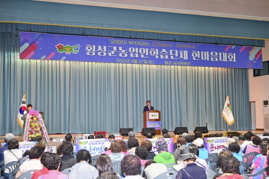 | 횡성군 농업인 학습단체 한마음대회가 지난 27일 오전 횡성실내체육관 및 어울림마당에서 지역농업발전의 선도적 역할을 맡아온 농촌지도자, 생활개선회, 품목별 농업인연구회, 4-H회 등 농업인학습단체 회원 800여명이 한자리에 모여 화합과 결속을 다졌다.