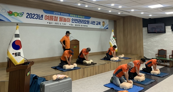 여름철 물놀이 안전관리요원들을 대상으로 심폐소생술, 인명구조장비 사용법, 산업안전보건교육 등 사전 교육을 실시했다.