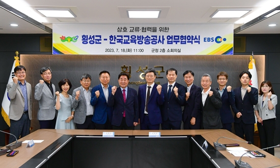 | 관광문화도시 경쟁력과 미래사회에 대비한 유능한 인재 육성을 도모하기 위해 횡성군은 지난 18일 오전 군청 소회의실에서 한국교육방송공사(사장 김유열)와 상호 교류·협력을 위한 업무협약을 맺었다.