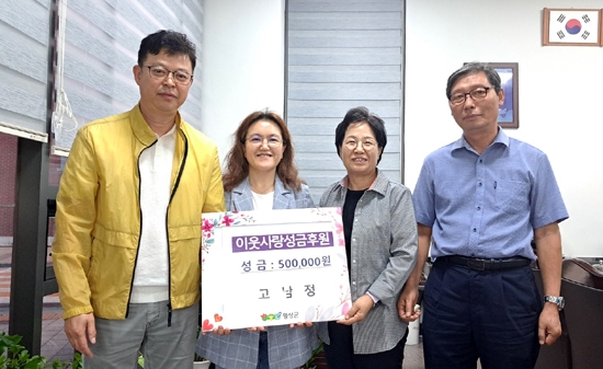 | 횡성읍 개전리에 거주하는 고남정(여·48세)씨는 지난 29일 횡성읍행정복지센터에서 횡성읍지역사회보장협의체(민간위원장 박성철, 공공위원장 전재도)에 이웃사랑 후원금 50만원을 기탁해 훈훈하게 하고 있다.