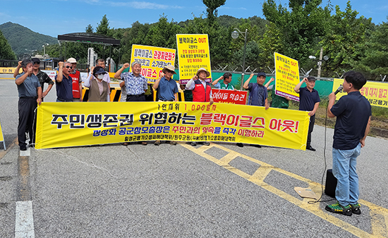 | 블랙이글스 해체와 스모크 문제 해결을 촉구하는 지역 주민 1시위가 1000일째 계속되고 있다.