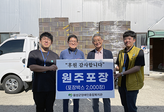 | 원주포장(대표 추교홍)은 지난 1일 횡성군장애인종합복지관(관장 박성길)에 포장박스 2,000개를 기부했다.