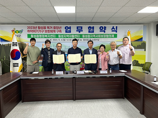 | 횡성읍(읍장 전재도) 관내 홀로 사는 중장년 취약 가구의 고독사 예방을 목적으로 촘촘한 지역 보호 체계를 구축하고자 지난 4일 횡성지역자활센터와 횡성군지역사회보장협의체와 서로 긴밀히 소통하고 협력하는 것을 주요 내용으로 업무협약을 체결했다.