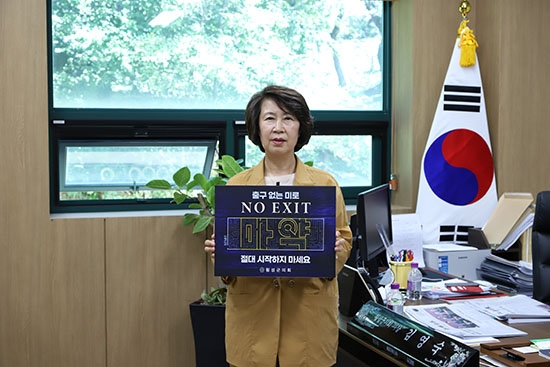 | 김영숙 횡성군의회 의장은 지난 12일 횡성군의회에서 마약 근절을 위한 ‘NO EXIT’ 마약범죄 예방 릴레이 캠페인에 동참했다.