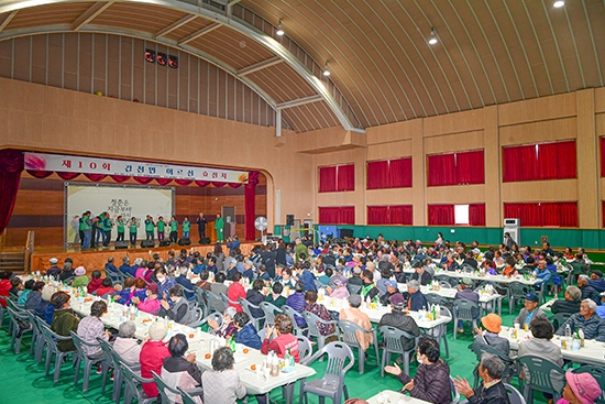 제10회 둔내면 어르신 효잔치가 지난 17일 둔내복합체육센터에서 김명기 군수, 김영숙 의장을 비롯한 어르신 700여 명이 참석한 가운데 열렸다.