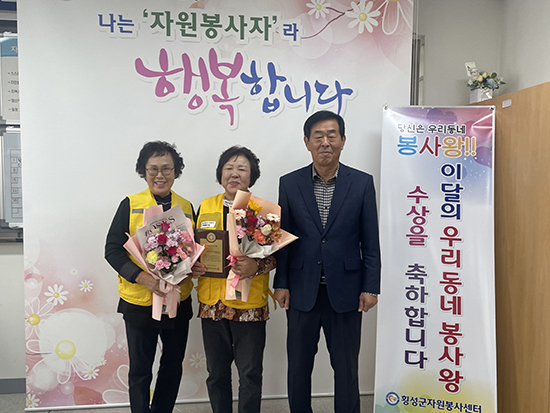 | 횡성군자원봉사센터(센터장 한재수)는 10월 우리동네봉사왕(서원면)에 개인으로 정명환, 단체로는 서원적십자봉사회(회장 최병희)을 선정하고 지난 24일 횡성군자원봉사센터 사무실에서 시상식을 진행했다.