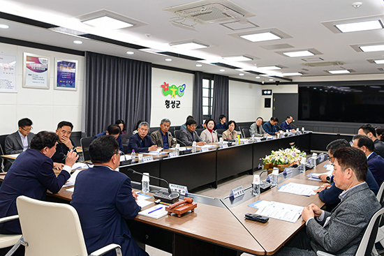이날 회의 주요 내용으로는 전국적인 세수 감소로 인한 2024년 횡성군 예산 편성 건과 이모빌리티 거점특화단지 조성사업을 비롯한 주요 현안 사항에 관해 설명을 듣고 논의가 이루어졌다.