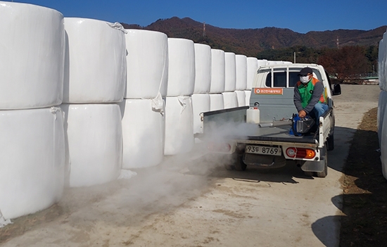 | ↑↑ 횡성군은 우천면 소재 한우농가 럼피스킨병 판정에 따른 살처분과 출입 통제 등의 조치 이후, 추가적인 확산을 막기 위해 방역소독을 실시하고 있다. |
