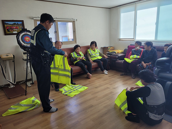 | 횡성경찰서 횡성지구대(대장 양유정)는 지난 22일 오전 11시 횡성읍 읍상5리 등 관내 경로당을 찾아 교통약자인 어르신 보행자에게 야광조끼를 배부·착용시키는 등 교통안전교육을 펼쳤다.