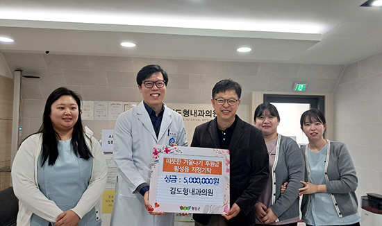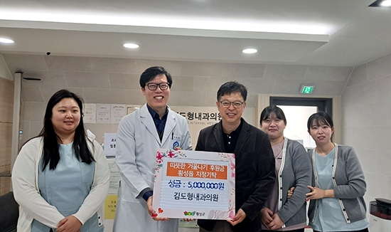 | 김도형내과의원(대표 김도형)은 추운 겨울을 앞두고 일자리와 소득이 끊긴 홀로 사는 중장년 취약 위기 가구에 긴급생계비 명목으로 지난 21일 오전 횡성읍 행정복지센터에 500만원을 지정기탁했다.