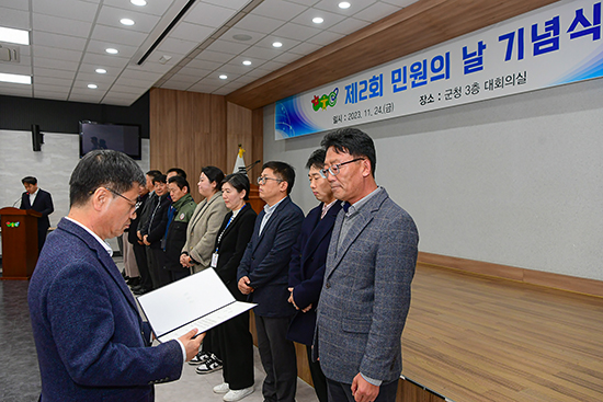 | 민원 행정의 중요성에 대한 이해와 인식을 높이고, 국민을 섬기는 공무원에 대한 노고를 격려하는 자리로 지난 24일 군청 대회의실에서 민원의 날 기념식을 개최했다.