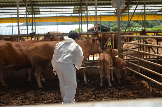 특히 반경 500m(관리지역), 500m∼3㎞(보호지역), 3㎞∼10㎞(예찰지역) 3개 구역으로 방역대를 설정하고 방역대 내 소 사육 농가에 대해서는 백신접종을 완료했으며, 관리·보호지역(반경 3km) 내 2개소에 2인 3교대 근무조를 투입해 24시간 통제에 들어가는 등 강도 높은 방역체계를 유지해왔다.