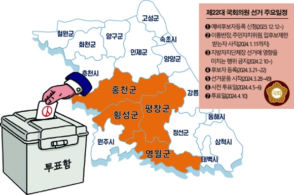 현재로서는 홍천·횡성·영월·평창 지역구에서는 민주당과 국민의힘 등 양당에서만 후보자가 거론되고 있지 제3당 등에서는 거론되는 인물이 없어 이대로 진행된다면 여·야가 맞붙는 치열한 선거전이 예고되고 있다.