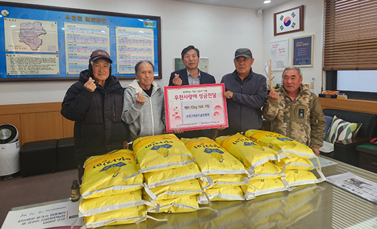 우천면그라운드골프협회(회장 김진태)는 지난 13일 우천면 행정복지센터를 방문해 우천사랑애기금에 백미 16포(50만 원 상당)를 기부했다.