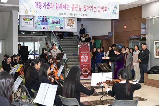 이번 음악회는 대동여자중학교의 김영중 교장이 제안한 것을 김명기 군수가 받아들여 성사됐고, 이날 군청 1층에서는 지역에서 묵묵히 헌신하는 공직자들에게 따뜻한 하루아침을 선물하고자 하는 학생들의 마음을 담은 아름다운 음악이 즐겁게 했다.