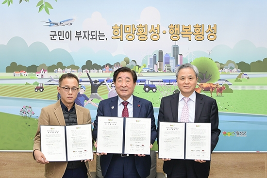 | 횡성군은 독거 어르신의 사회적안전망 강화 및 고독사 예방을 위해 지난 8일 군수 집무실에서 (사)어르신의 안부를 묻는 우유배달, 횡성지역자활센터와 ‘어르신의 안부를 위한 우유배달 사업’ 업무협약을 체결했다.
