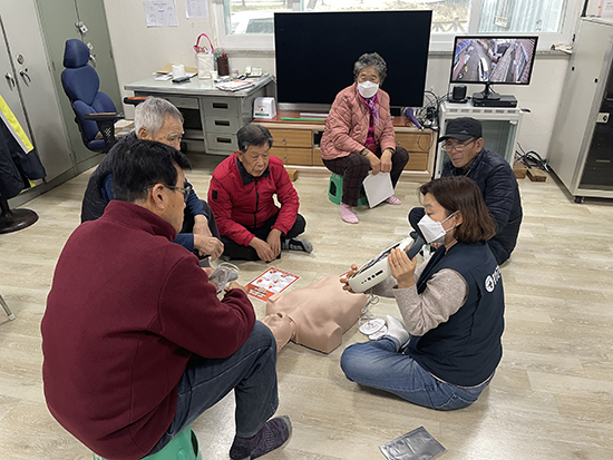 | 농한기인 2024년 1월과 2월 두 달간 어르신이 주 생활공간인 경로당을 방문해 심폐소생술 교육이 진행된다.