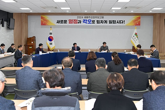 | 횡성의 미래 비전 실현을 위한 ‘2024년 주요 업무 추진계획 보고회’가 지난 9일 군청 대회의실에서 김명기 군수, 김형진 부군수를 비롯한 부서장 등이 참석한 가운데 열렸다.