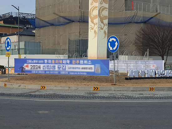 횡성시가지 중심이라고 할 수 있는 횡성오거리 회전교차로 정중앙에 단속을 비웃는 듯 신입생 모집 현수막이 불법으로 내걸려 있는데도 다음날이 돼서야 철거됐다.