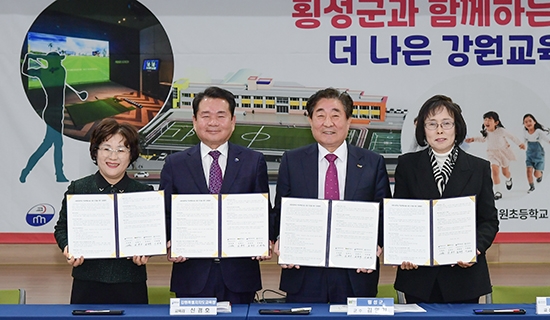 | 횡성군과 강원특별자치도교육청(교육감 신경호), 횡성교육지원청(교육장 김경녀), 서원초등학교(교장 이병필)는 지난 16일 횡성군청에서 교육부 학교복합시설 사업 추진을 위한 업무 협약을 체결했다.
