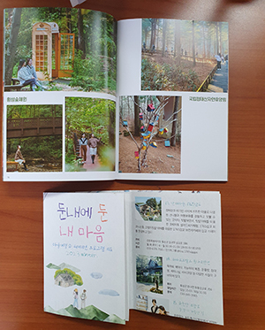 | ↑↑ ‘더 쉼’이 만든 ‘둔내에 둔 내마음’ 관광안내책자와 ‘마을여행&워케이션 프로그램 지도’ |